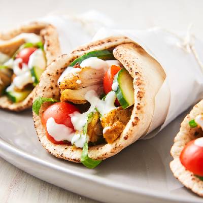 Experience the perfect fusion of creamy cheese and tender, marinated chicken in our **Special Cheese Chicken Shawarma**, wrapped in a soft, fresh pita.